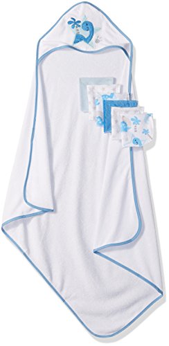 -. Title : Little Beginnings Dino P.R.Int Hooded Towel and Washcloths Gift Set, Blue