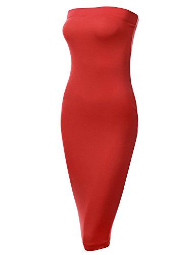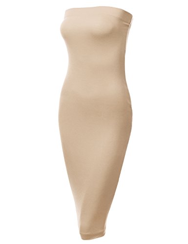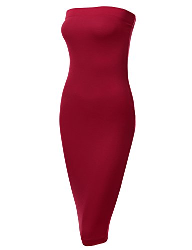 Basic Strapless Tube Dress with Bodycon Silhouette and Midi Length