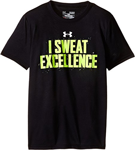 Under Armour Kids Boy's I Sweat Excellence Short Sleeve Tee (Big Kids) Black/Fuel Green T-Shirt SM (8 Big Kids)