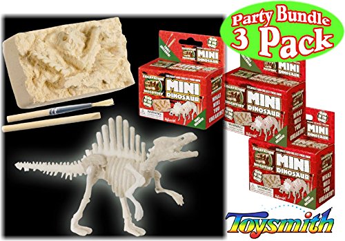 -. Feature : Party Set Bundle Includes 3 Assorted Toysmith Mini Glow in the Dark Dinosaur Excavation Kits! / Excavate parts of a miniature 2.75 inch dinosaur skeleton from a block of plaster -earth- then assemble it! / Each kit includes unearthed block, dig excavation tool, brush and instructions. Possible dinosaurs include T-rex or Triceratops. / Perfect for travel, party favors, giveaways, schools, organizations, stocking stuffers, special needs, baskets, playdates & so much more! / For Ages 7 and up - Fun activity for the whole family!