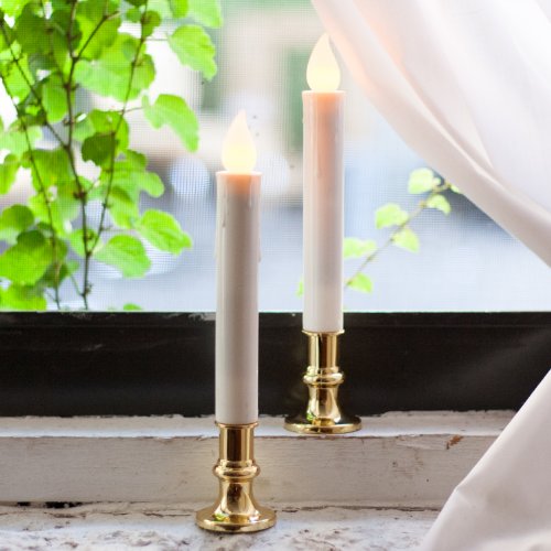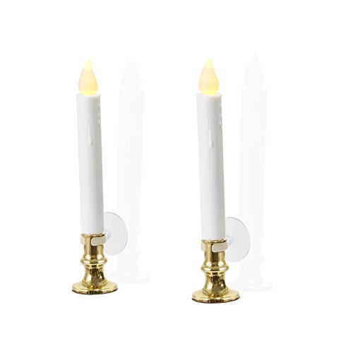 ALL INCLUSIVE ✓ - This all inclusive set of 8 white resin tapers with warm white LED lights and gold removable holders includes everything you need to accessorize your space during the holidays or year-round! {Additional Information: Indoor/Outdoor Use, 2 AA Batteries included (in each taper), and 8 Suction Cups included for secure placement to window.}