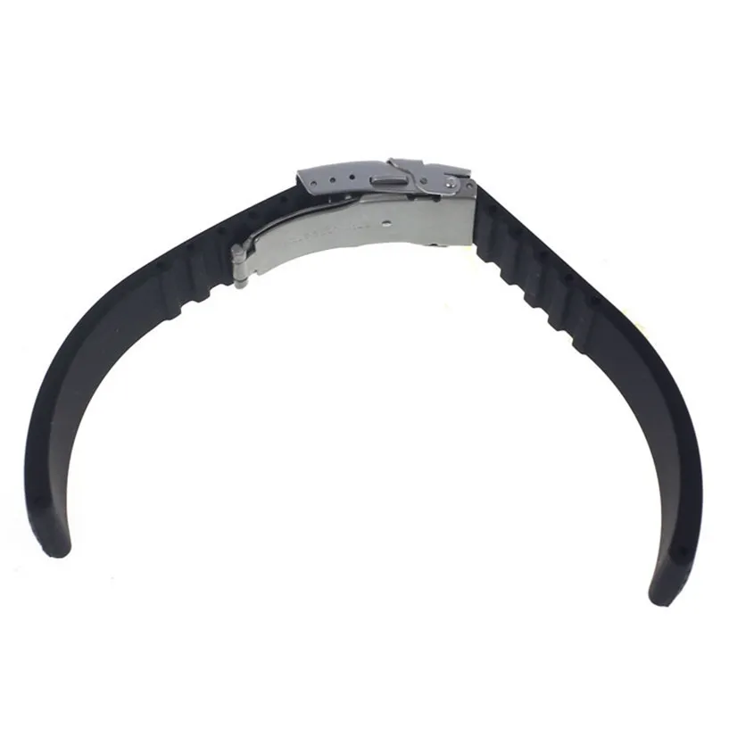 product:Black Silicone Rubber Watch Strap Band Deployment Buckle Waterproof