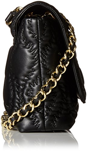 -. Feature : Quilted faux-leather handbag featuring front flap with gold-tone orb hardware / Chain cross-body strap with faux-leather shoulder