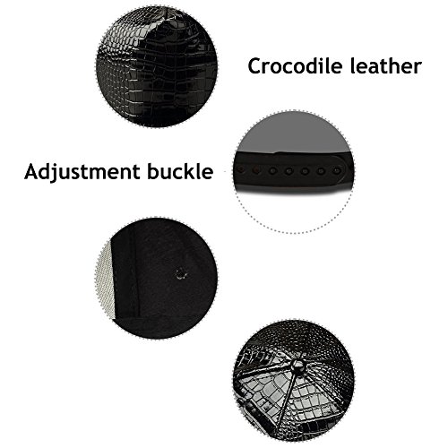 -. Feature : The bright colors of the crocodile-patterned baseball cap can easily catch everyone's eyes. / The inside of the hat is made of cotton. The top is made of PU leather material. It is comfortable, light and portable. / Long Shaped, keeps the sun from your face and offers great protection from the damaging rays. / Brim:2.75"/7cm;height:4.32"/11cm Back-sized belt buckles are durable and washable. / Classic style, suitable for men and women unisex, sports travel essentials Lightweight material provides a comfort & durability.