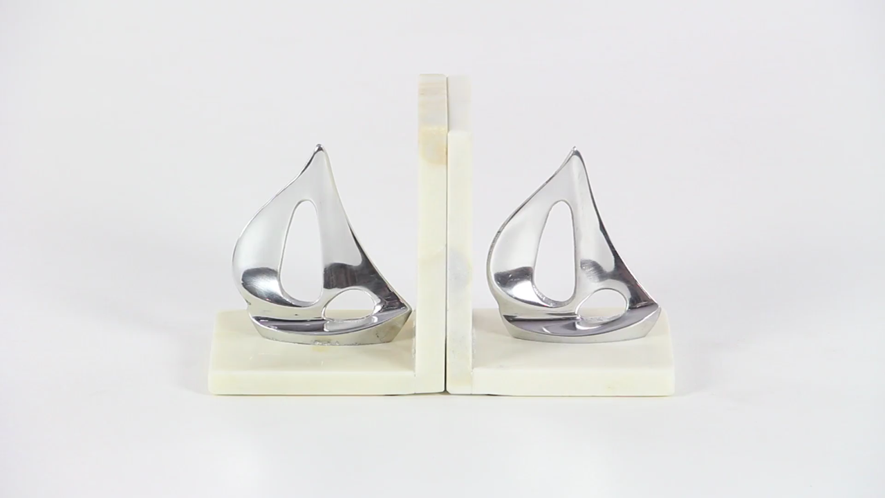 Deco 79 49664 Aluminium Marble Bookend, 5" by 6"