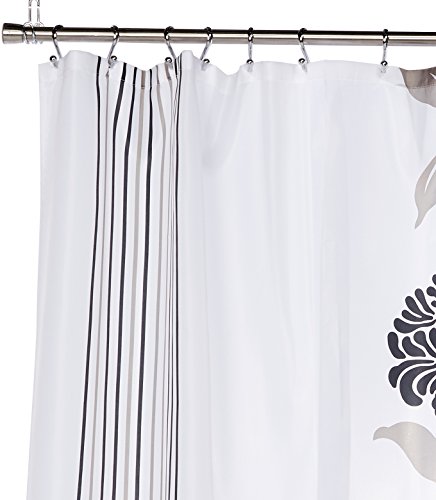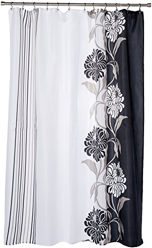 Carnation Home Fashions 100-Percent Polyester Fabric Print 70 by 72-Inch Shower Curtain, Standard, Chelsea, Black/White