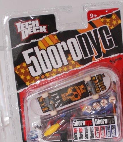 Studio : Spin Master Publisher : Spin Master Product Description Go big by going small. With the 96mm Fingerboard, all you need is some imagination and two of your ten fingers. Tech Decks come with metal trucks, grip tape and real skate company graphics. Switch it out with the included set of graphic wheels and mess with the risers. Sticker sheet, riser pads, bolts and hardware tool included. With hundreds from all the top skate companies, you'll want to collect them all. 9 . STYLE VARY FOUNDATION SKATEBOARDS, DARKSTAR, PLAN B SKATEBOARDS, MYSTERY, BIRDHOUSE, TOYMACHINE, TRANS POWELL, BAKER SKATEBOARDS, ZERO, EXPEDITION ONE 0