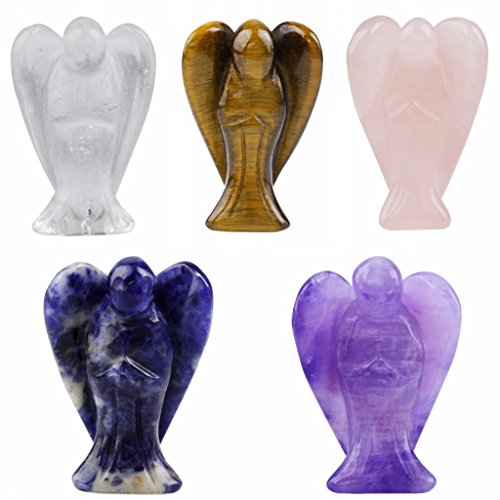 rockcloud Healing Crystal Gemstone Carved Pocket Crystal Guardian Angel Figurines 1.5 inch