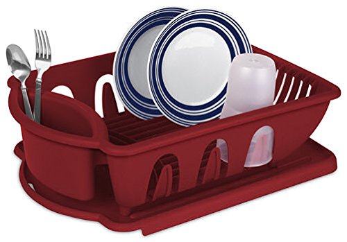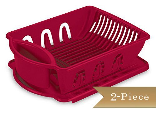 Perfect for your counter top, this 2-piece Dish Rack and Drainboard will fit securely and comfortably. The sturdy red plastic dish rack set has great durability and a quality construction to ensure a long-lasting use.