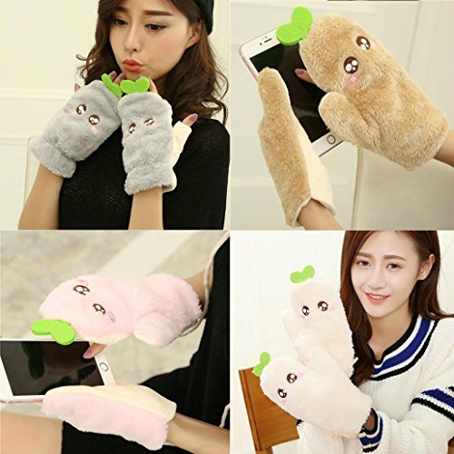 Product DescriptionSpecifications:Item Name: GlovesGender: Women'sMaterial: Faux FurSize: One Size Fits MostFeatures: Leaf Design, Cartoon Expression, Flip Cover, Warm, SoftNote: Due to the light and screen setting difference, the item's color may be slightly different from the pictures.Package Includes:1 Pair of Gloves0