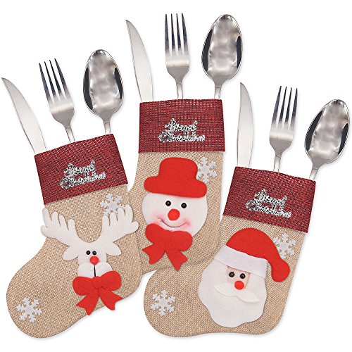 - Adorable rustic 3D santa/snowman/reindeer silverware pockets and utensil holders make your table setting look festive.