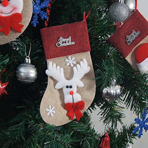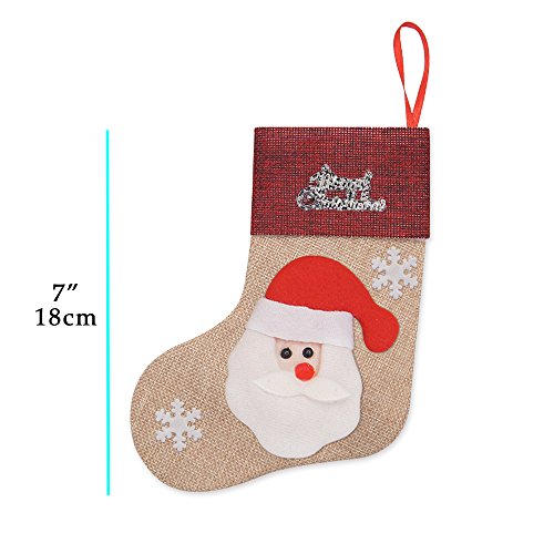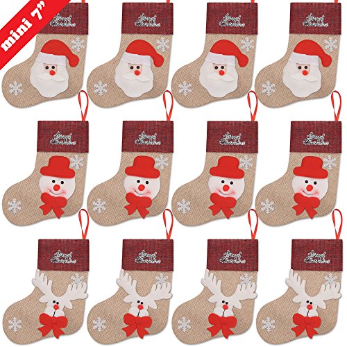 Ivenf 12 Pack 7" 3D Burlap Mini Christmas Stockings, Santa Snowman Reindeer Gift Card Silverware Holders, Bulk Treats for Neighbors Coworkers Kids Cats Dogs, Small Rustic Red Xmas Tree Decorations Set