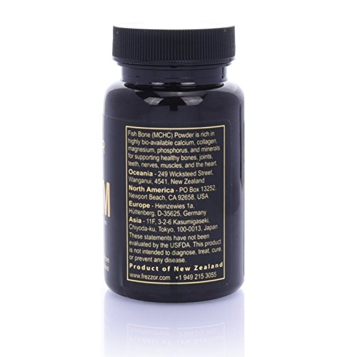 -. Feature : NATURALLY SOURCED - Sustainably Wild-Caught New Zealand Fish Bones Contain a Full Spectrum of Minerals and Trace-Minerals combined with Naturally Sourced Vitamin D3 and K2 to Maintain Healthy Bone Density / A STRONGER YOU - Frezzor Calcium contains the compounds that the body requires including Phosphorus, Magnesium, Collagen, Selenium, Boron, Copper, Iron, Zinc, Vitamin K2, and Vitamin D3 to work synergistically within the body to support healthy bones, joints, heart, muscles, nerves, connective tissue and teeth which reduces the risk of osteoporosis. / VITAMIN D3 - Vitamin D3 is a crucial cofactor for bone health, as it regulates calcium balance and directly affects the osteoblast cells responsible for bone building and bone remodeling. / VITAMIN K2 - Vitamin K2 plays a direct role in transporting calcium from circulation into bone tissue by activating (carboxylation) two key calcium transport proteins in the bloodstream: matrix Gla protein, which transports calcium from circulation into bone, and osteocalcin, which reduces calcification of arteries and plays a significant role in bone development. / TAKE AS A DAILY SUPPLEMENT - This product is available in 60 count bottles. Consumers typically take between one or two capsules daily. Each bottle contains at least a 30-Day supply.