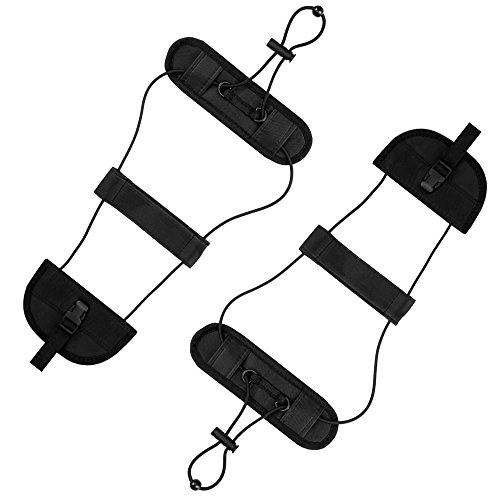 HOW TO USE : - Snap the base of the Bungee to the bottom bag. - Stack second bag on top of the first one. - Pull Bungee over the second bag and onto carryon handle. - Pull elastic to increase tension which tightens the strap. - Lock elastic into place with the squeezable plastic lock.