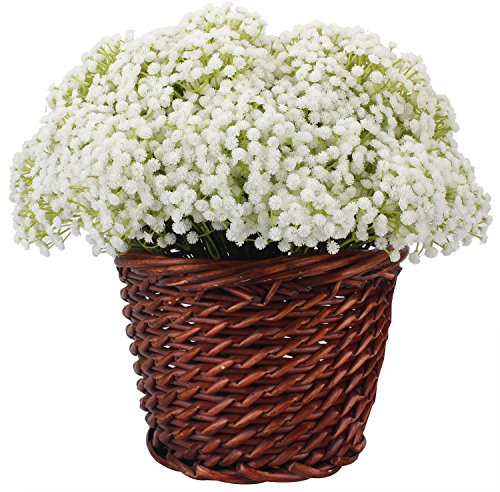 Duovlo Artificial Baby Breath Flower Gypsophila White For Wedding Home Decor Gift,Pack of 8 (NO BASKET)