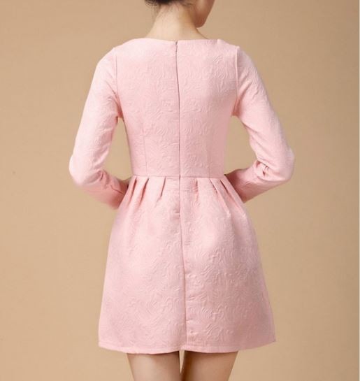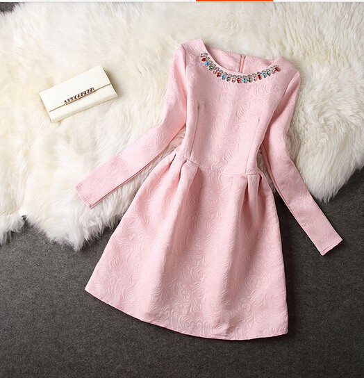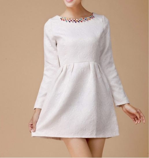 キラキラビジュー長袖 ジャガードドレスワンピース ホワイト/S