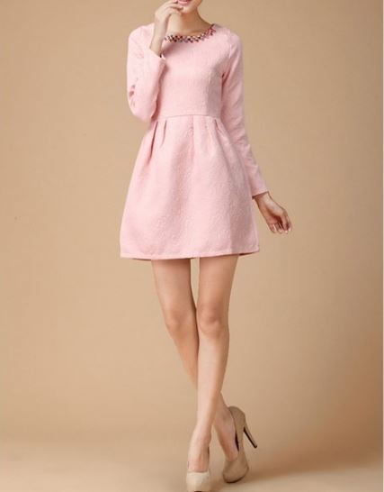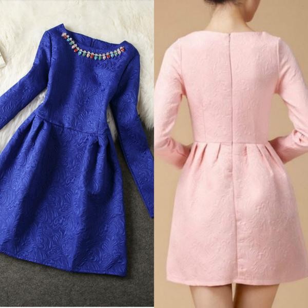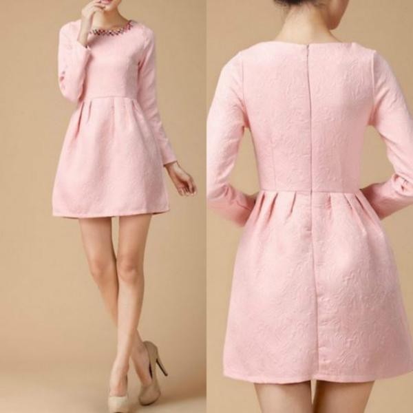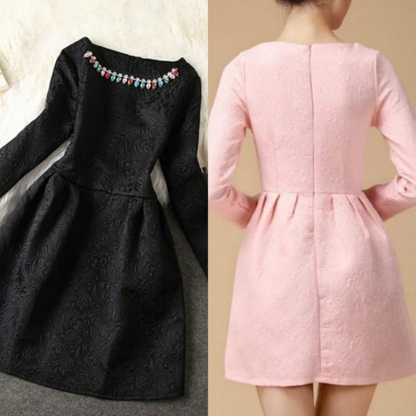 ビジュー/長袖/ミニドレス/ショート