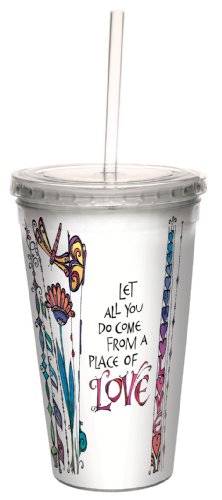 Tree-Free Greetings cc33943 Come from Love by Joanne Fink Artful Traveler Double-Walled Cool Cup with Reusable Straw, 16-Ounce