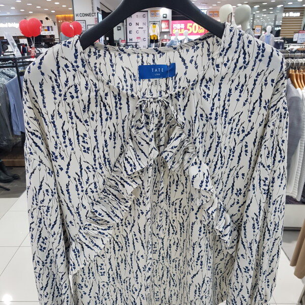 플라워패턴이 들어간 블라우스청바지나 슬랙스에 코디하기쉬운 스타일여름상품으로 나와 지금부터 여름까지입을수있는스타일