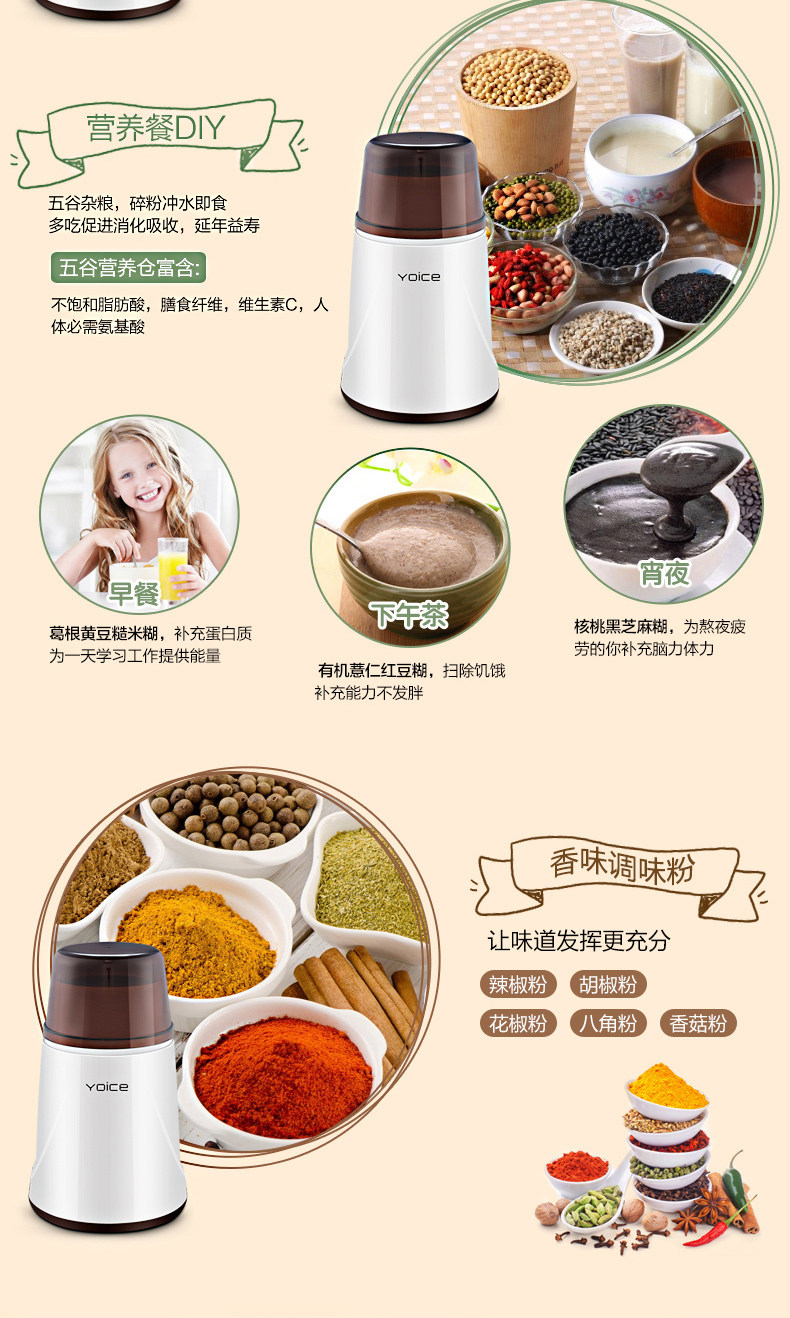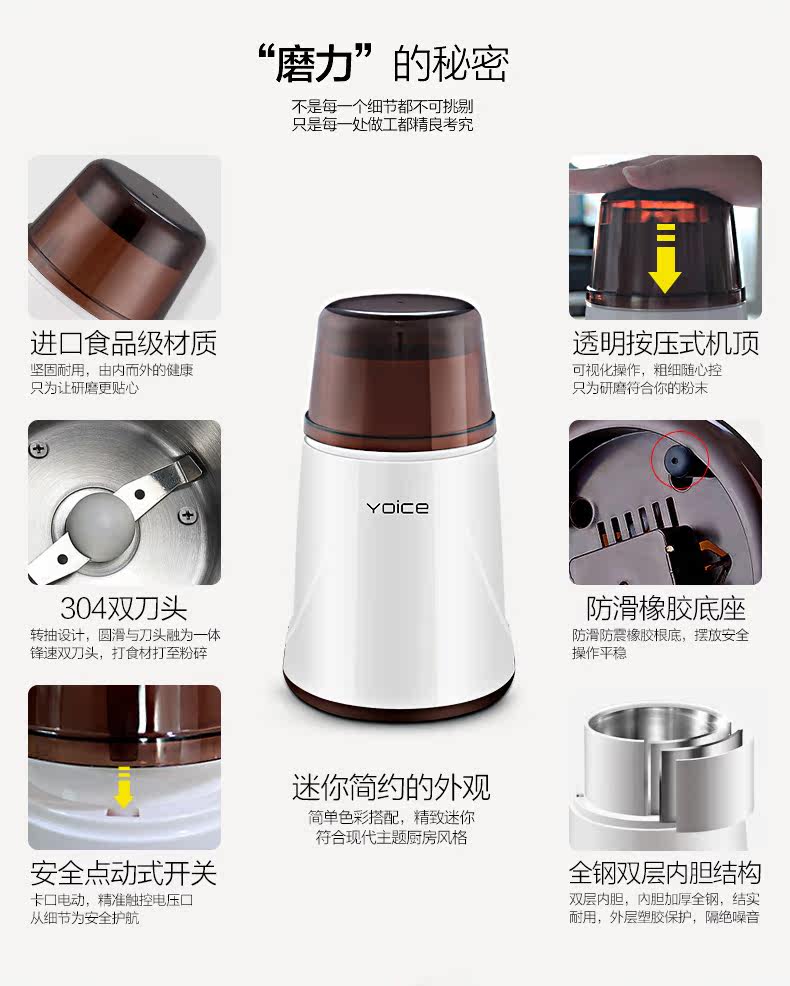Electric mill, 304 stainless steel knife, grinding grains, coffee, beans, spices, Chinese medicine in line, super motor, 8 seconds speed grinding, the size see below