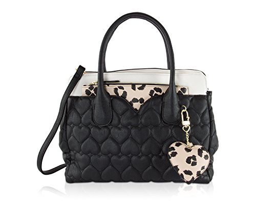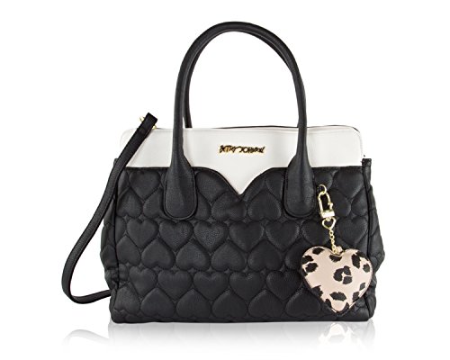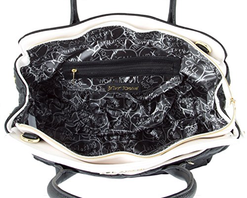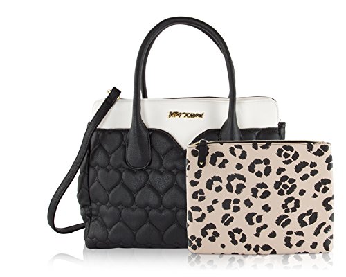 Two bags are better than one Betsey Johnson Pouch Dip Bag has plenty of space for everything and plenty of style for anything. Exterior Features Front heart shaped slip pocket with zippered Wristlet pouch that ensures stylish flair, Zip top satchel ,Double Handles 5 Drop, Removable shoulder strap 23" Drop, Fully Lined printed Interior with Wall zipper pocket and 2 Slip Pockets. This carryall offers versatility for an everyday wear and will keep you organized with separate zippered pouch to carry the essentials.Feature