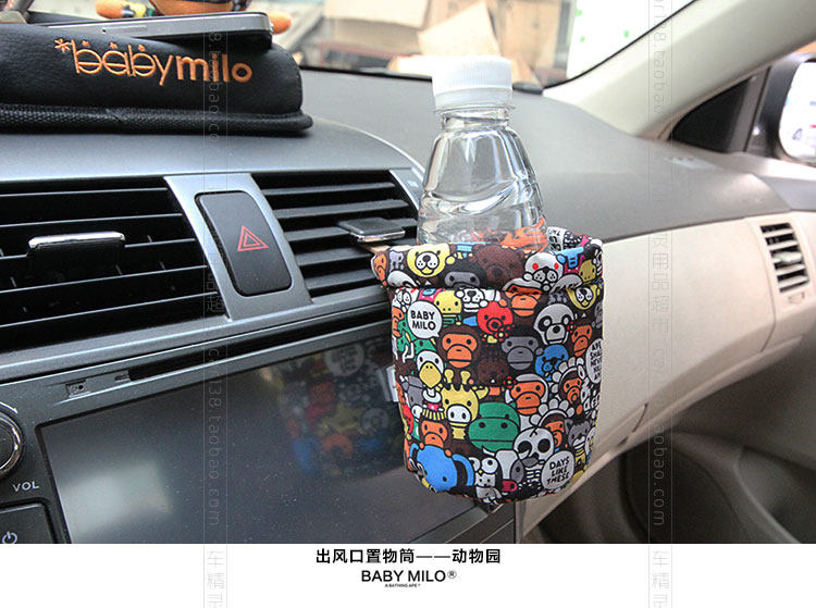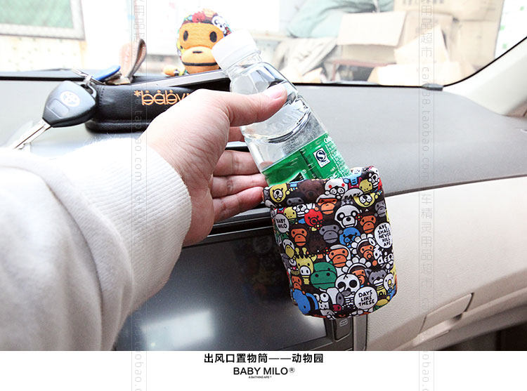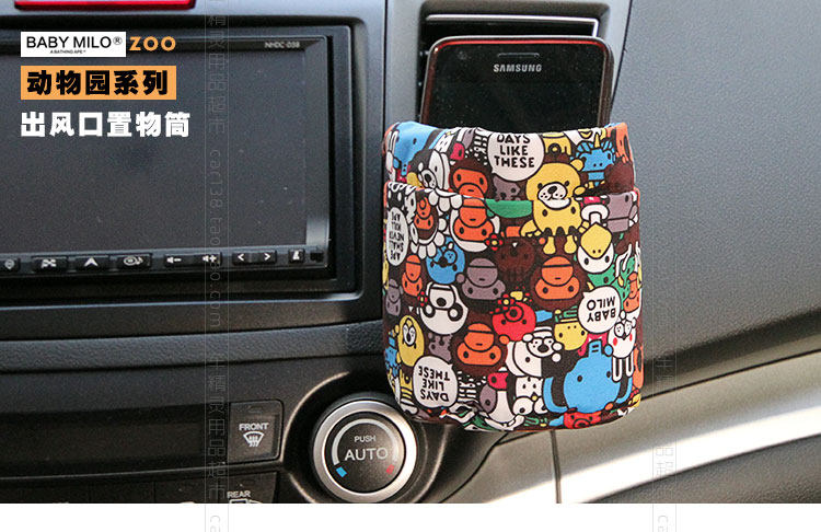新款蒙奇奇汽车空调出风口置物筒桶袋 可爱卡通车用手机饮料架