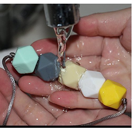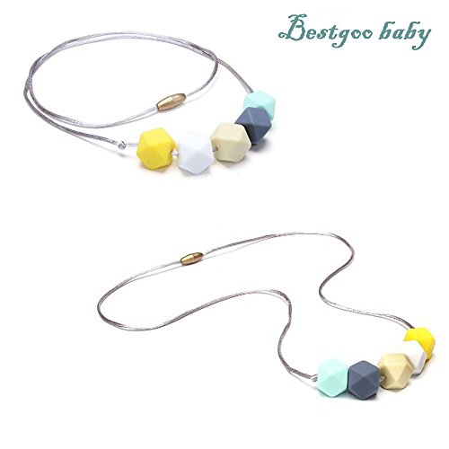 BESTGOO BPA FREE SILICONE TEETHING NECKLACE FOR MOM TO WEAR WITH BULK SOFT CHEWABLE BEADS, DROOLING TEETHING PAIN REDUCE OBVIOUSLY ¡