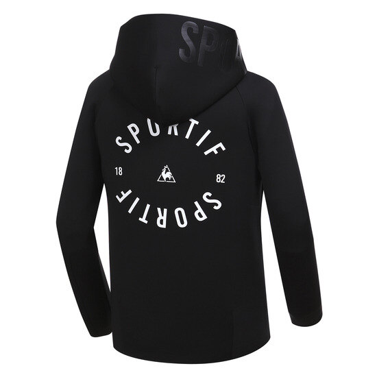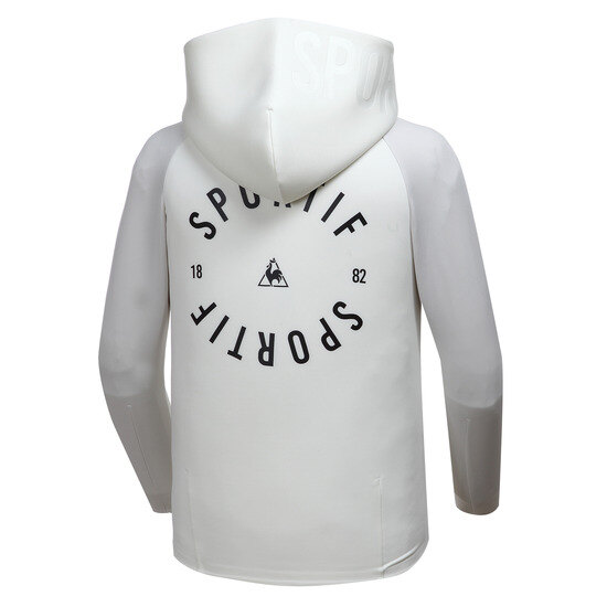 넓은 후드와 등쪽의 원형 로고 프린트가 포인트입니다.