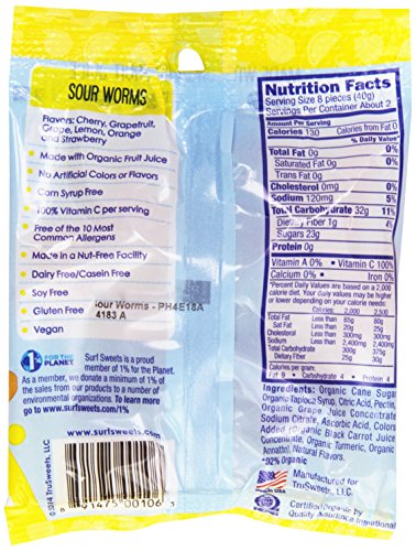 -. Title : Surf Sweets Organic Sour Worms Assorted Fruit -- 2.75 oz