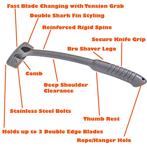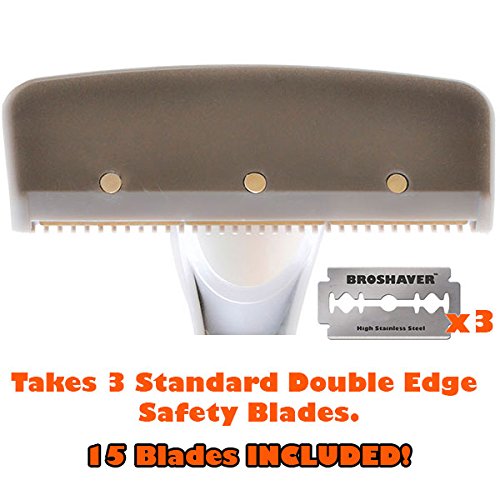 BRO SHAVER Back Hair Shaver, Uses Standard Double Edge (DE) Safety Razor Blades, Stainless Steel Bolts, Cheap refills, Blades cost pennies, 15 razors...