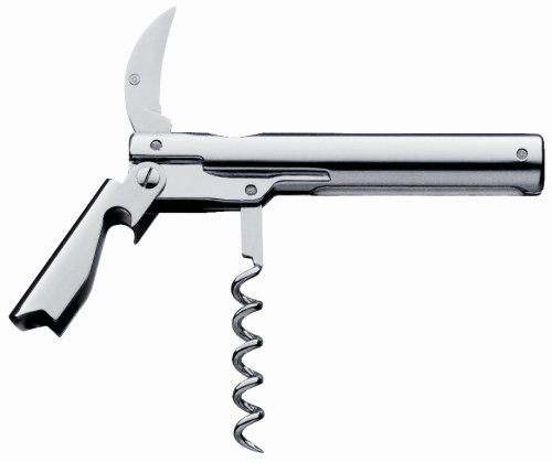Product Description The round handle makes this easier on the hand than flat waiter's corkscrews, as well as enhancing its sleek chrome contours. You'll find everything you need here for opening a bottle of wine, and this is the perfect size for small home bars, picnics, vacations and so on.