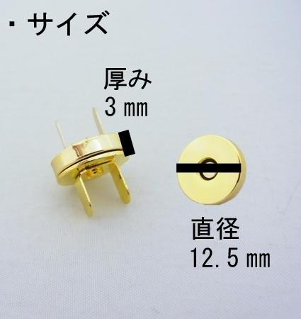 生地に差し込むタイプのマグネットホックです。スタンダードタイプ。 製造国:中国 素材・材質:鉄・真鍮・マグネット(ネオジウム) 商品サイズ:直径12.5mm×厚み3mm 仕様:差し込みタイプ セット内容:マグネットホック×20 ※サプライヤー直送品  ご注文後3~4営業日後の出荷となります【商品名】マグネットホック スタンダードシリーズ M-72 12mmタイプ×20個 ゴールド