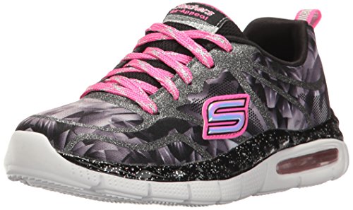 Skechers Kids Girls' Air-Appeal-Glitztastic Sneaker, Black/White/Pink, 4.5 M US Big Kid