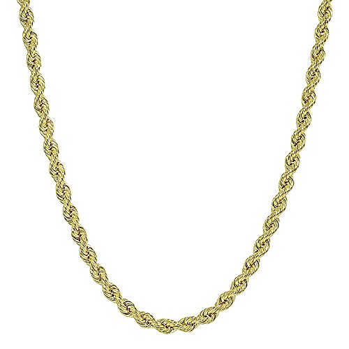 14K Yellow Gold 3mm Twist Hollow Rope Chain Bracelet, Anklet, or Necklace for Men and Women