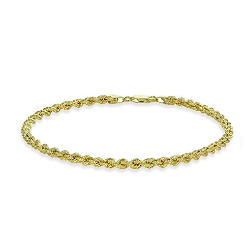 These stunning bracelets, anklets, and necklaces for men and women feature a 3mm twist rope chain. The chain is made of 14k yellow gold and is secured by a lobster-claw Clasp. Total Metal Weight = approx 2.6gr