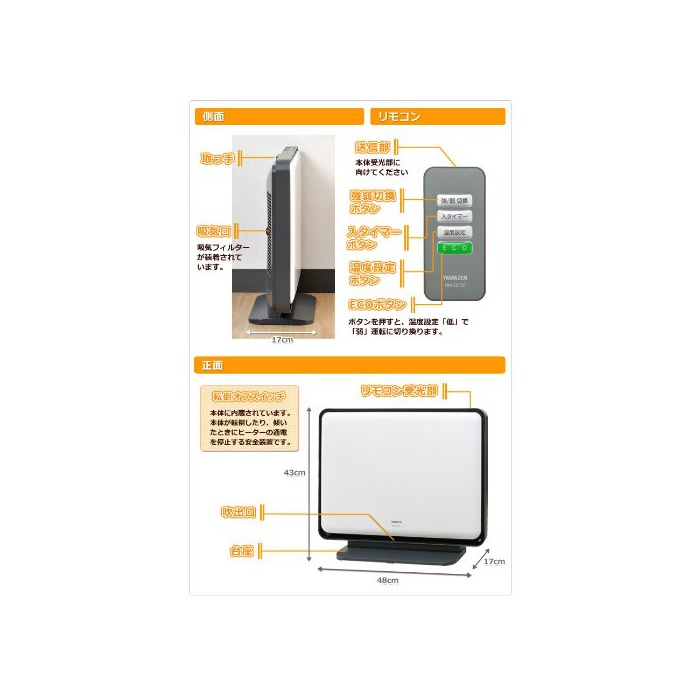원본상품명:山善(YAMAZEN) パネル型セラミックヒタ(リモコン付き)(弱2段階切替度設定4段階) ホワイト DF-RS121(W)