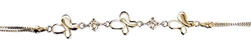 Silver Color Copper Anklet with Butterflies and CZ Glass stones - Clear (11 Inches)