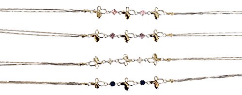 Colors available: Blue, Purple, Pink and Clear. Silver Color Copper Anklet with Butterflies and CZ Glass stones - Clear (11 Inches)