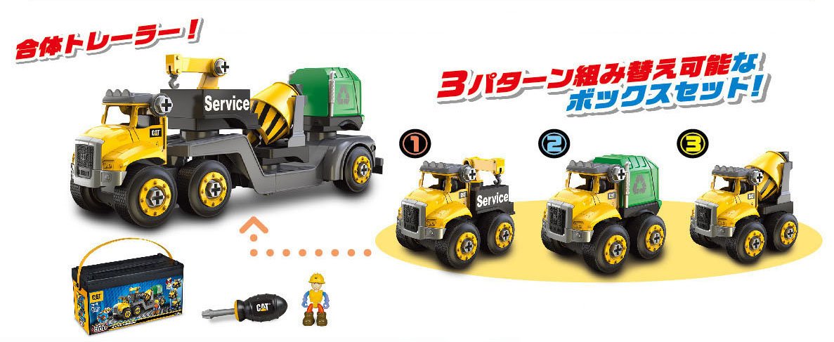 The first set-up introductory set! 3 types of trailers can be recombined + combined trailer can be assembled! After assembly you can roll and play!