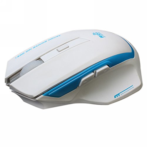 Qisan 1800DPI 6 Button Wirless Gaming Mouse, The Nano Receiver(in the battery storage) - White