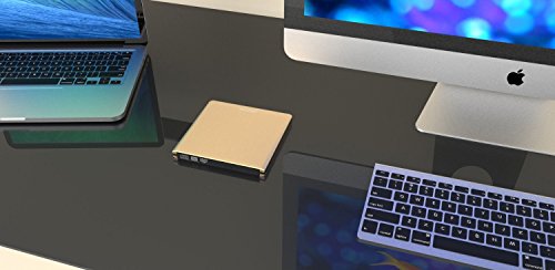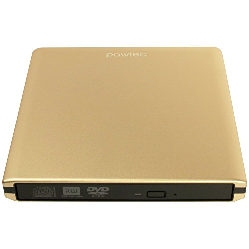 Pawtec Luxury External USB 3.0 Aluminum 8X DVD-RW Writer Optical Drive – Gold Edition