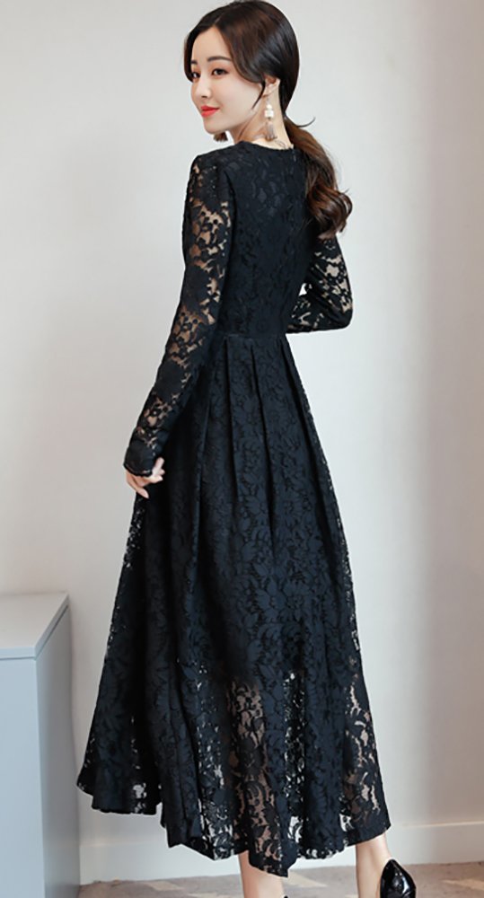 Korean-style fancy long-sleeved mini one-piece dress that adopts lace material clean.