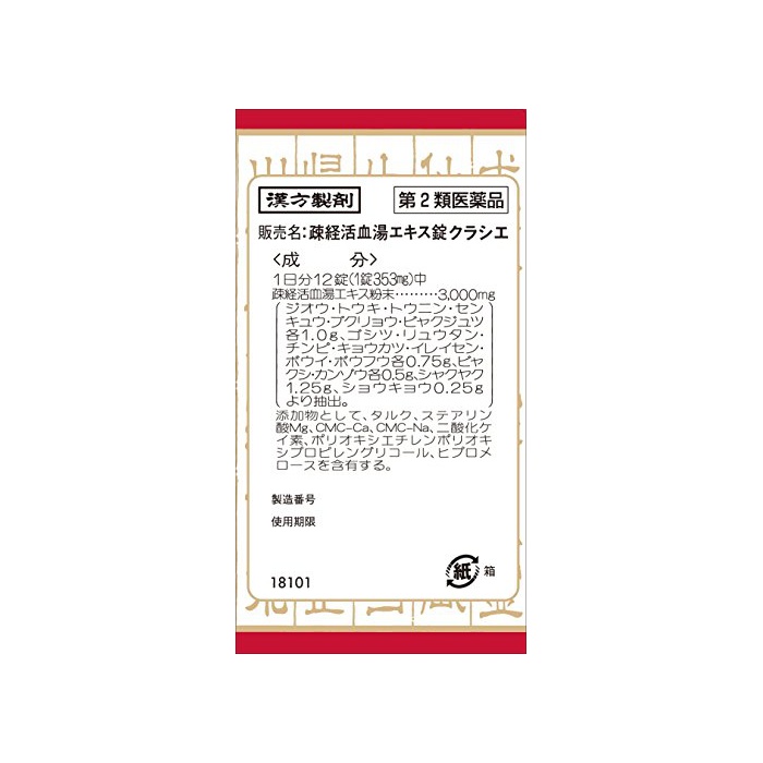 원본상품명: 【第2類??品】疎?活血湯エキス錠クラシエ 180錠