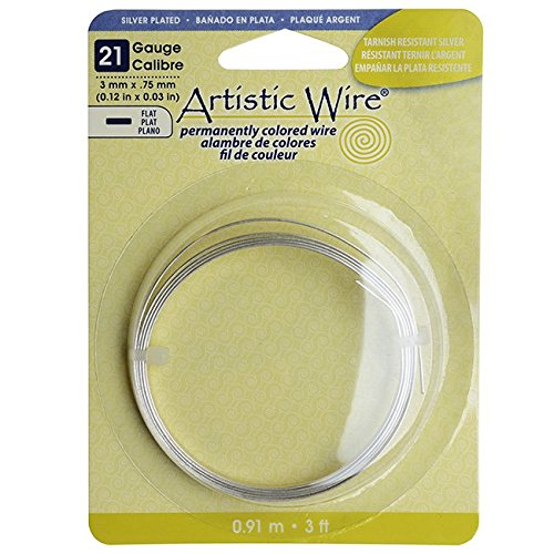 Beadalon 21-Gauge Jewelry Artistic Wire/Flat Wire, 3-Feet, Tarnish Resistant Silver Plated