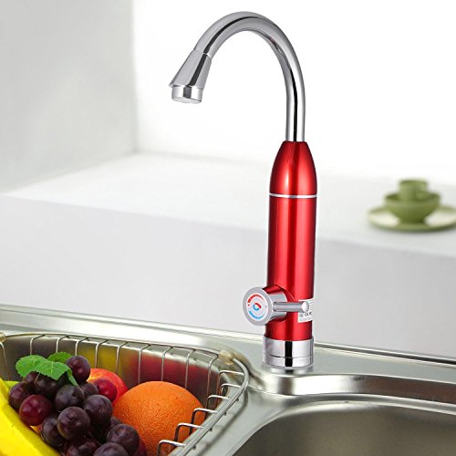 Electric Hot Water Faucet, ICOCO Electric Hot Water Heater Faucet Kitchen Heating Dispenser Tap (11R Red)