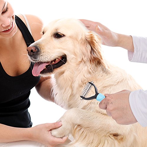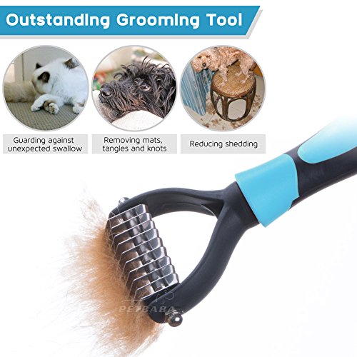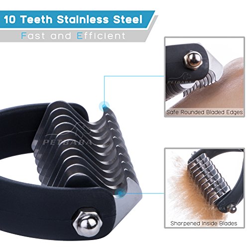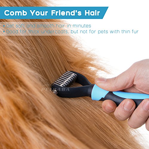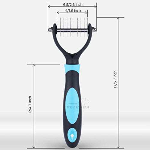 EXTRA FINE QUALITY MATERIAL CHOSEN FOR LONGEVITY! - PETBABA shedding brush is carefully crafted from stainless steel, which has sharpened inside blades but fine rounded tooth without scratching or hurting the skin and works well like massager to increase blood circulation. Deshedding comb with nonslip ergonomic handle is great for your hand use and give you maximum control, and it will be ok no matter how you decide to hold this dematting tool