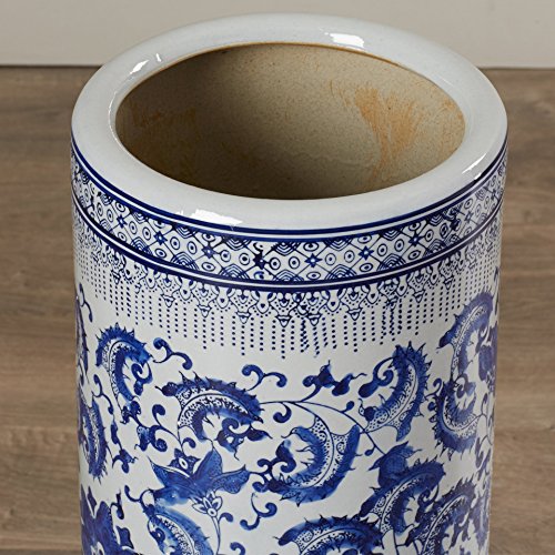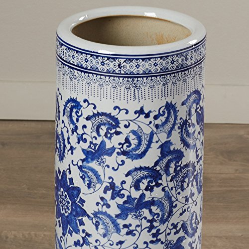 Studio : Menagerie Publisher : Menagerie Binding : Kitchen Product Description The World Menagerie Umbrella Stand is an excellent piece of furniture to add additional storage space for keeping umbrellas organized. This umbrella stand features a cylindrical shape with a blue floral pattern on a white background. It has a classic design and structure that will add a vintage flair to any style of home decor. The Umbrella Stand from World Menagerie features a porcelain construction, which makes it sturdy and long-lasting. The minute detailing on the pattern of this stand enhances its aesthetic appeal. It can be a perfect addition to your home entryway and will help keep your umbrellas handy. It is easy to place and can easily fit in even smaller spaces as it occupies minimum floor space. The stand also helps keep the floor dry as it does not allow water from damp umbrellas to drip onto the floor. This freestanding umbrella stand is easy to maintain. It can be wiped clean with a soft, dry cloth to keep it looking as good as new for years to come. 0