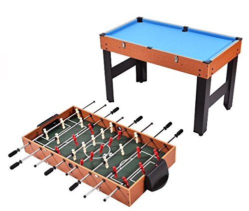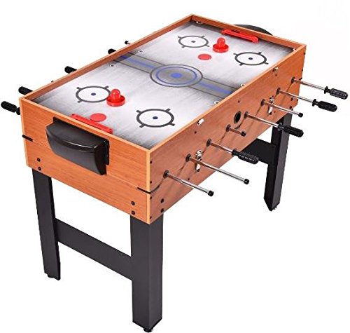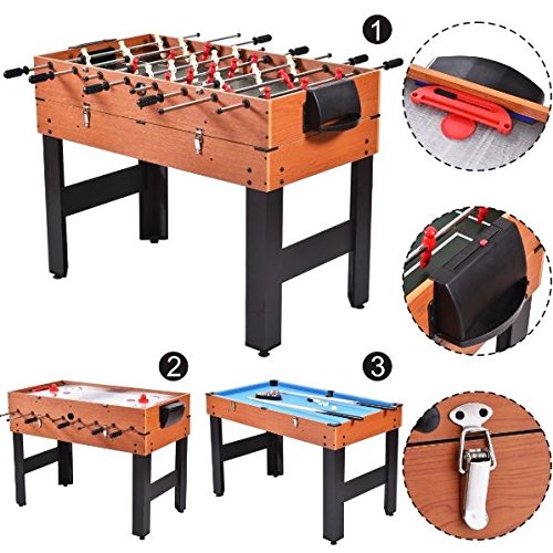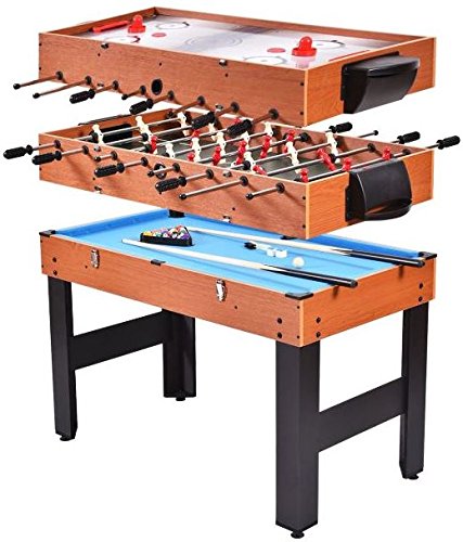 Studio : KA Company Publisher : KA Company Binding : Misc. Product Description The three-in-one multi-game table (48") makes a fun and versatile addition to your home's game room. It includes three table tops for easy storage and conversion. This three-in-one pool table includes billiards, slide hockey and soccer. The unique design features re-enforced legs for additional durability. The leg levelers provide easy assembly and table leveling. The base of this combo table can be converted easily and quickly between the games. It comes with the accessories you need to get started right away. Don't hesitate to buy it!
