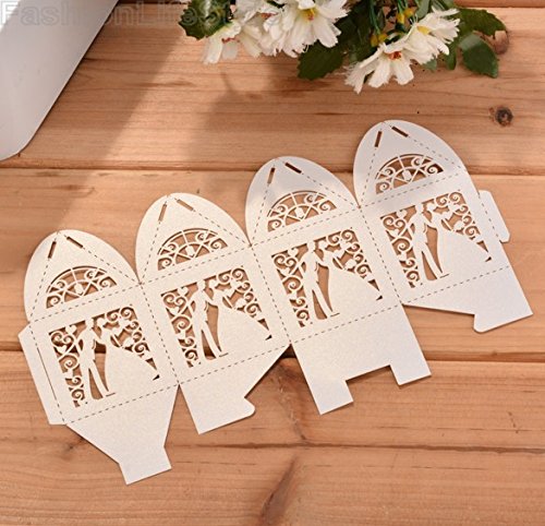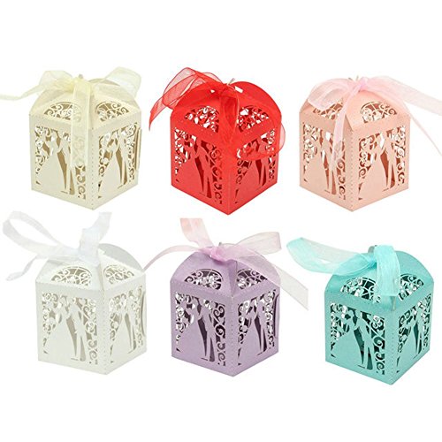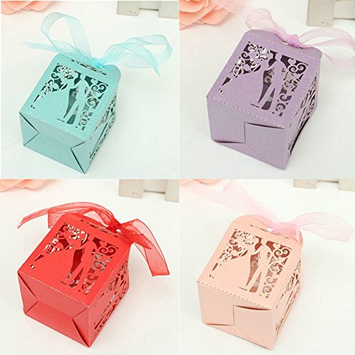 -. Binding : Kitchen -. Brand : PONATIA -. Feature : Great for baby shower favour boxes, Bommboniere or candy boxes.It can accommodate 2 Ferrero / Material:permium paper.Size:approx.5 x 5 x 7.5 cm. / Each box comes with Organza Ribbon for you to tie them together or atta / Hollow carved style.Boxes come flat packed and easily assembled.Come with ribbons / If you want to customize, please contact the seller. -. IsAutographed : 0 -. Label : PONATIA -. Manufacturer : PONATIA -. ProductGroup : Home -. ProductTypeName : HOME -. Publisher : PONATIA -. Studio : PONATIA -. Title : PONATIA 50pcs/Lot Colorful Bride and Groom Candy Box Paper Wedding Favors Candy Boxes Party Wrapper