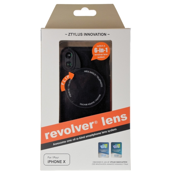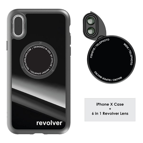 Get powerful optics with the thin and lightweight Revolver Lens. The Revolver Lens now comes with an all new version that offers 6 lenses in one small package. The dual optics design is fully compatible with the dual camera for the iPhone X. Get a variety of lenses in a package that is about the size of an Oreo.